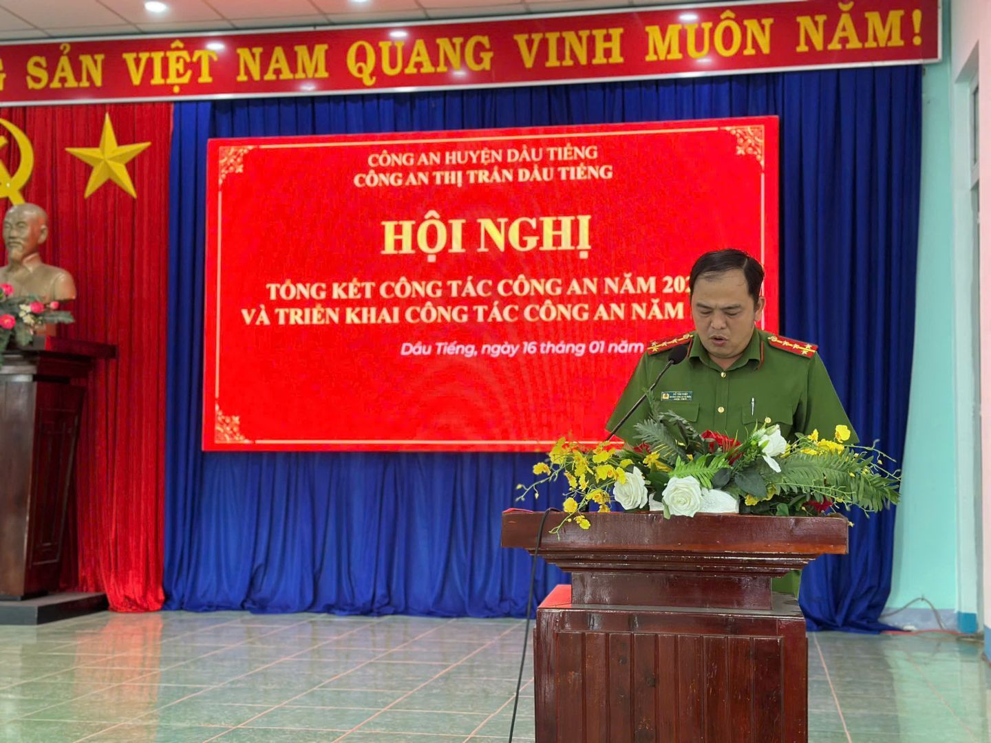 Chiều ngày 16/01/2025, Công an Thị trấn Dầu Tiếng tổ chức Hội nghị tổng kết công tác Công an năm 2024 và triển khai nhiệm vụ công tác Công an năm 2025. Đến dự hội nghị có đồng chí Trung tá Nguyễn Thanh Sơn - Phó Bí thư Đảng uỷ Công an huyện, Phó Trưởng Công an huyện; đồng chí Nguyễn Thị Bích Châu - Ủy viên thường vụ Đảng ủy - Chủ tịch Ủy ban MTTQ Việt Nam thị trấn; đồng chí Nguyễn Bình Nguyên - ĐUV - Phó Chủ tịch UBND thị trấn. Đồng chí Hồ Tấn Phát - Ủy viên thường vụ Đảng ủy - Trưởng Công an thị trấn chủ trì hội nghị. Cùng các ngành, đoàn thể thị trấn, các đồng chí Bí thư chi bộ, Trưởng khu phố, công an chính quy, lực lượng ANTT cơ sở.
