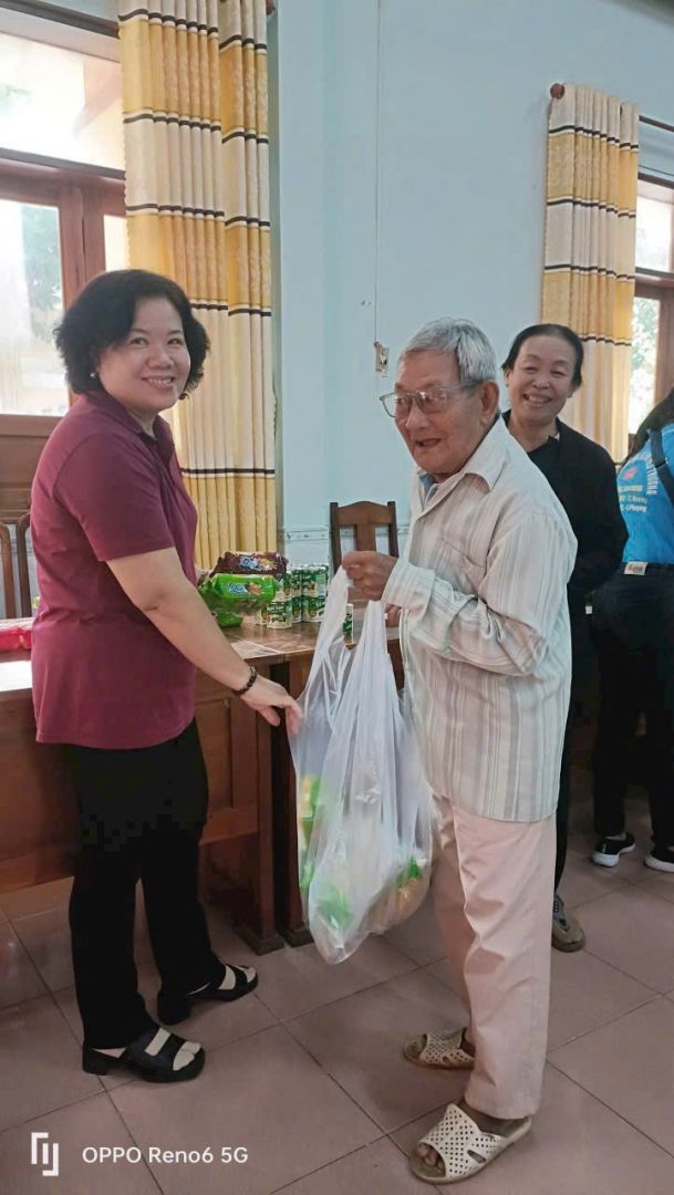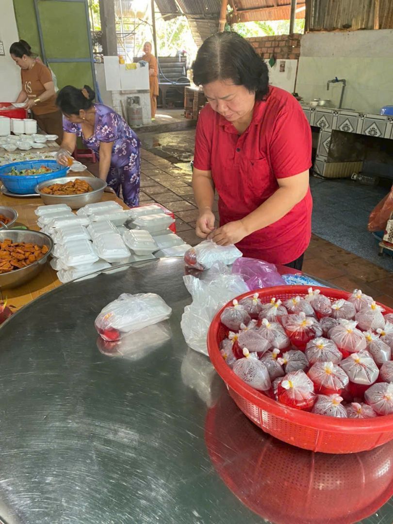 Bên cạnh đó, định kỳ vào ngày 14 - 15AL và 30 - mùng 1 AL hàng tháng, chị cùng các chị em nấu khoảng 200 - 500 bữa ăn phát miễn phí cho người có hoàn cảnh khó khăn trên địa bàn thị trấn; thường xuyên tổ chức trao tặng từ 100 - 200 phần quà, gồm: gạo, mì, nhu yếu phẩm với tổng trị giá khoảng 25.000.000 đồng - 50.000.000 đồng/đợt đến những hoàn cảnh đặc biệt khó khăn, người già neo đơn, người tàn tật, trẻ em mồ côi, người bị bệnh hiểm nghèo,.. trên địa bàn. Những bữa ăn, những phần quà chứa đựng cả tấm lòng, sự quan tâm của chị và các mạnh thường quân; nhìn những bữa ăn, phần quà được trao đến tay người cần, chị cảm nhận niềm vui khi được chia sẻ và thấy rằng việc mình đang làm thật ý nghĩa. Đây cũng là động lực để cho chị tiếp tục duy trì công tác thiện nguyện của mình./.