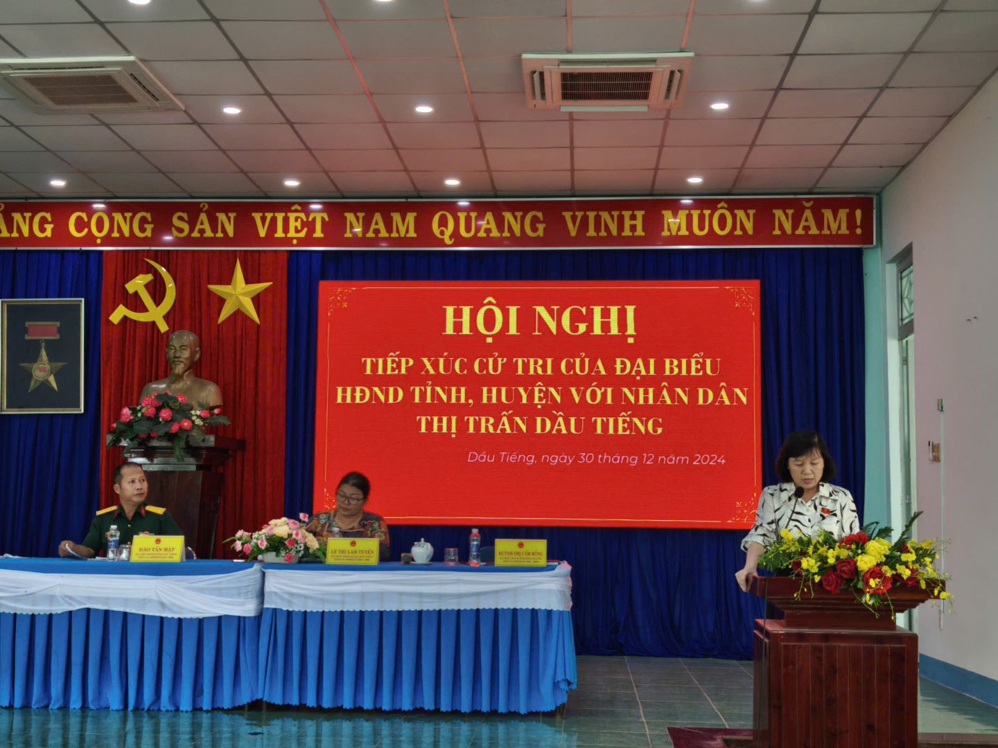 Chiều ngày 30/12/2024, đoàn đại biểu HĐND tỉnh, huyện đã có buổi tiếp xúc cử tri (TXCT) tại thị trấn Dầu Tiếng. Tham dự buổi tiếp xúc cử tri về Đại biểu HĐND tỉnh có Bà Huỳnh Thị Cẩm Hồng – Tỉnh ủy viên – Bí thư Đảng ủy – Chủ tịch Hội đồng thành viên công ty TNHH MTV cao su Dầu Tiếng. Đại biểu HĐND huyện: Ông Đào Tấn Mật – Huyện ủy viên – Chính trị viên Ban Chỉ huy Quân sự huyện Dầu Tiếng; Bà Lê Thị Lam Tuyền – Phó Chủ tịch Ủy ban MTTQ Việt Nam huyện Dầu Tiếng. Lãnh đạo thị trấn Dầu Tiếng có Ông Nguyễn Thành Dự - Phó Bí thư Đảng ủy – Chủ tịch UBND thị trấn; Bà Phan Thị Kim Tiến – Phó Chủ tịch HĐND thị trấn; Bà Nguyễn Thị Bích Châu – Chủ tịch UB.MTTQ Việt Nam thị trấn Dầu Tiếng; các ngành, đoàn thể thị trấn Dầu Tiếng và đặc biệt sự có mặt 100 lượt nhân dân thị trấn Dầu Tiếng.